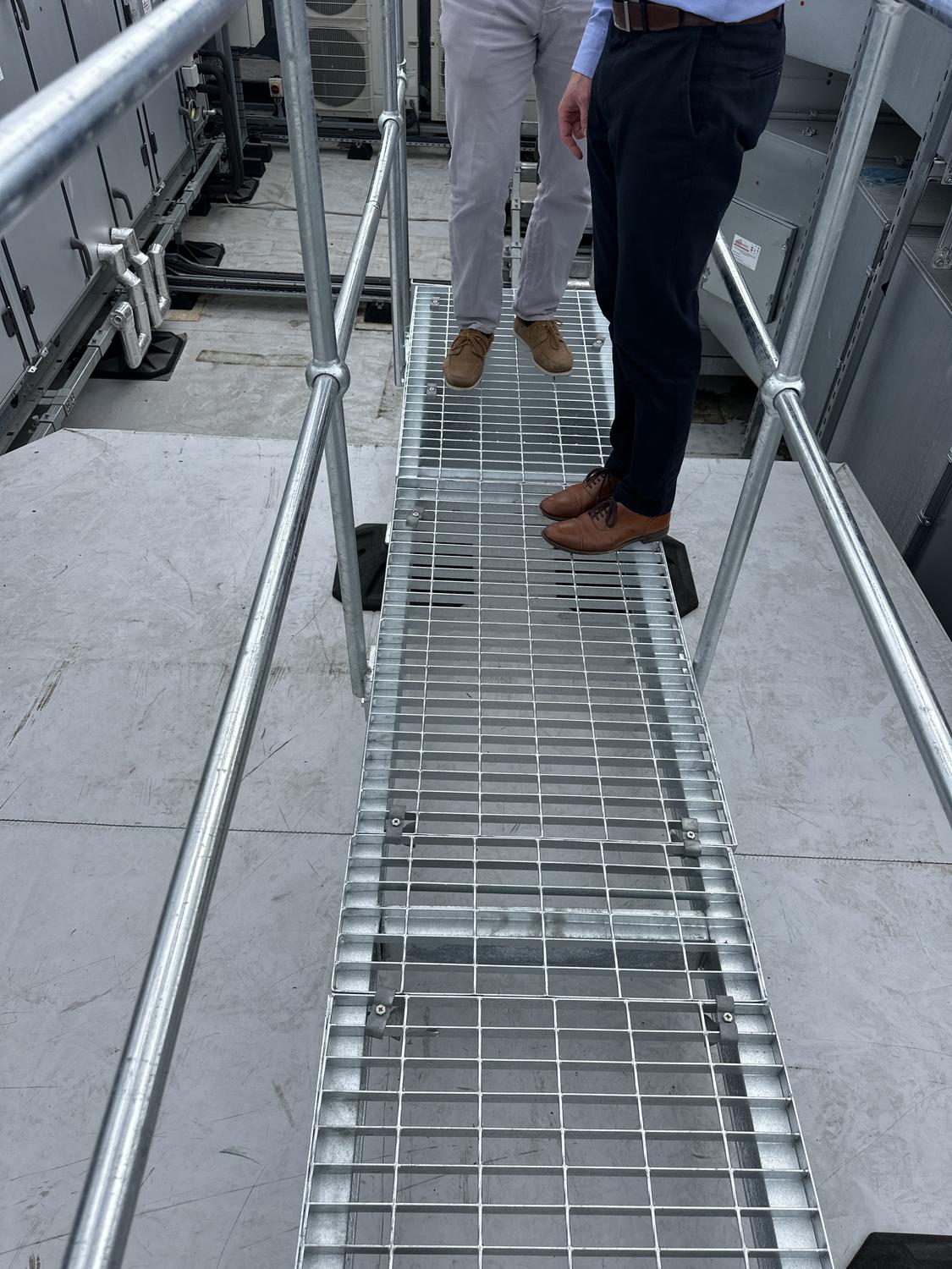 A walkway and step unit were installed on the roof as per the agreed drawing. An extension was fitted during the visit and was approved by the client on the day. On completion, the area was swept, tidied and left in a good state.
